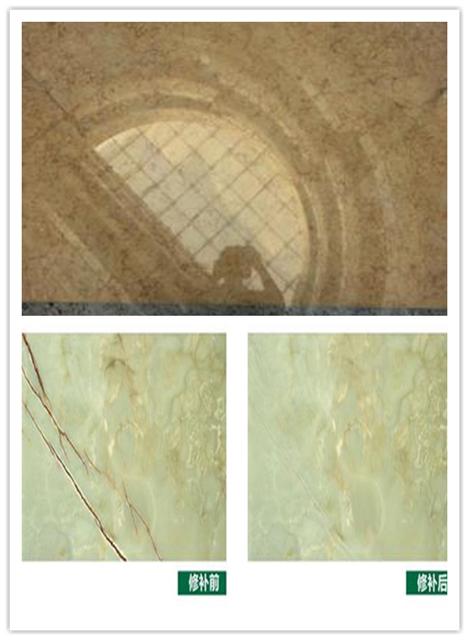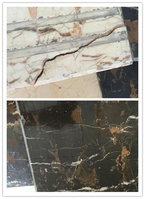 近丹東盧總接到一個(gè)酒店地板維護(hù)保養(yǎng)的工作,本以為是一件簡(jiǎn)單的清潔打磨的工作,結(jié)果到現(xiàn)場(chǎng)一看,傻眼了!大理石的地面、臺(tái)階跟柱面,很多因?yàn)楸pB(yǎng)不好,大理石地面裂縫斷開,大理石臺(tái)階也斷裂了,怎么辦?不弄好一分沒賺還要賠,趕緊上網(wǎng)搜大理石裂縫修補(bǔ)膠,找到了株洲世林膠業(yè)的SL3214透明石材膠。一看資料這款膠主要用于臺(tái)面板的復(fù)邊粘接,也可用于石材的粘接和修補(bǔ),對(duì)貼花、拼花等具有很好的效果。和混凝土、金屬、木材、陶瓷及玻璃等均可粘接。1.固化速度快;2.和石材的附著力好;3.透明、光澤度較好、硬度高、適合淺色石、耐黃變室內(nèi)可達(dá)1年以上;4.粘度適中,不會(huì)到處流淌;5.操作方便; 6.耐磨、耐老化;7.有良好的耐候性、耐稀酸、耐稀堿、耐水;8.無毒,環(huán)保。